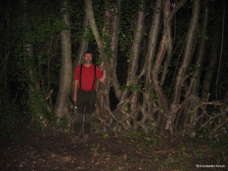 Vor einem Monat veröffentlichte ich Bilder von einem lebenden Zaun in Ohrdruf. Heute schaue ich mir dieses Naturbauwerk an und bin übermäßig beeindruckt! Ungefähr 100 Meter lang ist der lebende Zaun. Die schwedische Mehlbeere ist außerordentlich dick. Die Dämmerung ist schon weit fortgeschritten, doch mit Selbstauslöser und Blitz schaffe ich es Bilder zu machen: