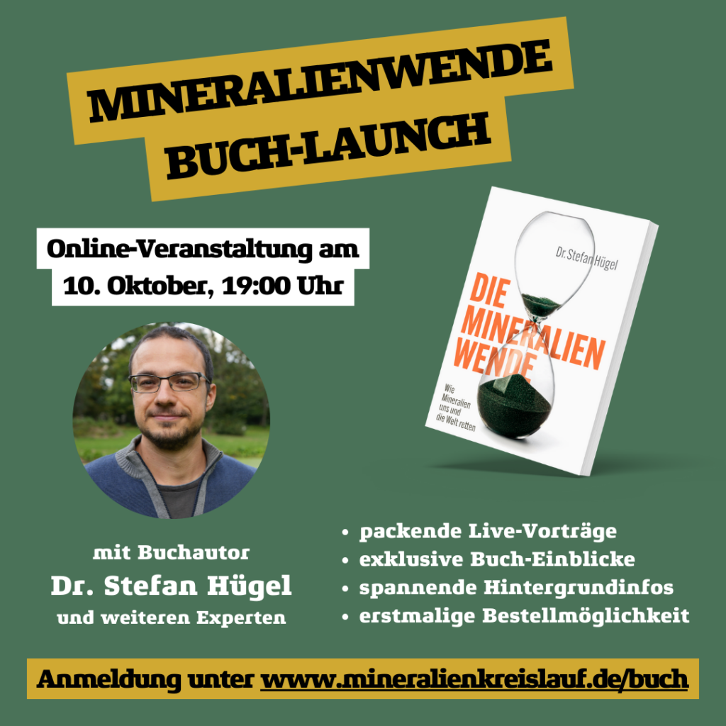 Start wird sein um 19 Uhr. Anmeldung ab sofort unter: https://www.mineralienkreislauf.de/buch/