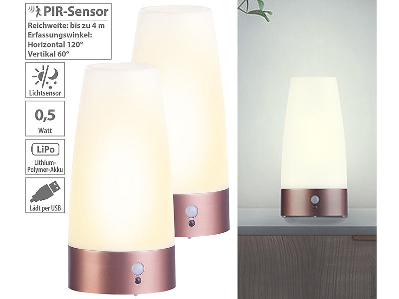 Der Akku der Leuchten hält viele Stunden, eher reicht er für mehrere Nächte. Aufgeladen wird per USB.