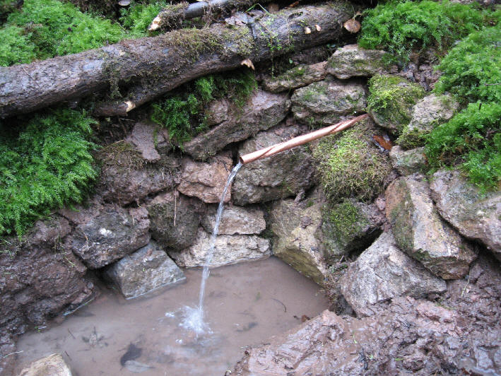 In unserem Naturbauten-Park ist eine Quelle. Deren Auslauf haben wir in den letzten Tagen umgebaut und ein Spiralwendelrohr von Kupfer-Anton eingebaut.