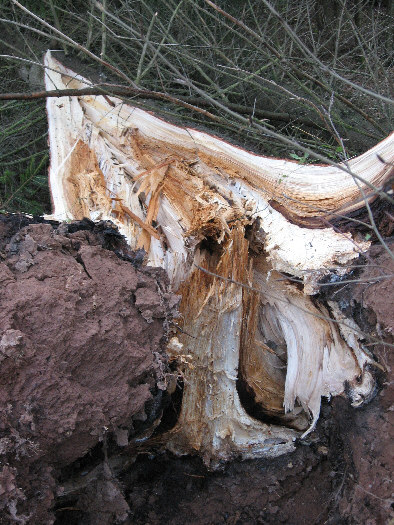Alle Gebäude in der Nachbarschaft sehen ok aus. Puh, gerade noch mal gut gegangen. Ein bißchen Teerpappe beim Brennholzschuppen, ein umgeworfener Zaun, und der schmale Zugangspfad zum Park muß etwas verlegt werden. Das ist schnell gemacht.