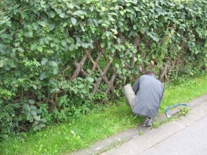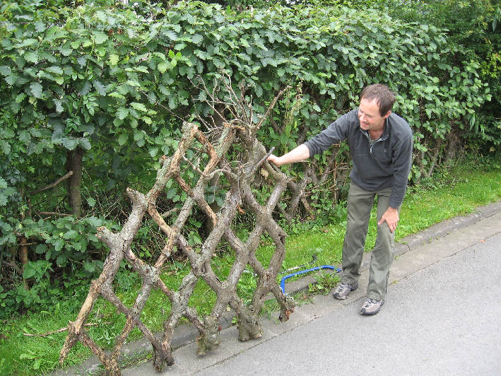 Die weit über 50 Jahre alten Gitterhecken sind teilweise noch gut erhalten. Manche Stücke sind jedoch abgestorben. Ein Bewohner zeigt mir so eine Stelle auf seinem Grundstück: