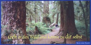 Auch der Mensch trägt ein Geheimnis in sich. Es ist leise, es drängt sich nicht auf. Wir lieben mehr das Oberflächliche, Spannende, Unterhaltende. Wenn mal nichts Besonderes passiert, kommt uns alles so langweilig und leer vor. Unser Leben ist aber nicht leer, wir haben nur vor lauter Äußerem das Innere vergessen. Es wird höchste Zeit, „in den Wald zu gehen“, das heißt, in die Stille der Einsamkeit, um das Geheimnis zu spüren, das wir selbst sind, um wieder zu uns selbst zu kommen.