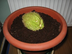 Gestern abend säte ich zum ersten Mal die Pflanze „Chayote“ aus. Es ist eine Birnenförmige Frucht, die einfach auf die Erde gelegt wird. Die Anzucht geht bis Mai als Zimmerpflanze, dann gehts raus ins Freie.
