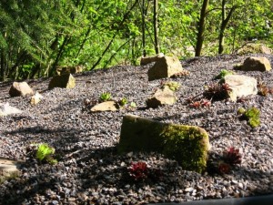 Die Lieblingspflanze meiens Vaters ist die Hauswurz (Sempervivum). Er hat im Lauf von Jahrzehnten eine sehr grosse Sammlung verschiedenster Variationen aufgebaut (siehe seine webseite). Heute hat er uns einige verschiedenfarbige Pflanzen mitgebracht. Diese haben umgehend ihren Platz auf dem Schuppendach gefunden: