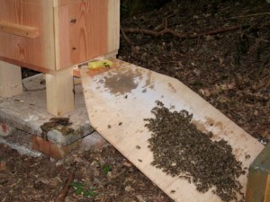 Die Kiste bleibt zu bis zum Frühling nächsten Jahres. Die Bienen wissen genau was sie zu tun haben: Zuerst Nektar sammeln um Waben zu bauen, dann Pollensammeln um die Brut zu füttern, weiterhin Nektar sammeln für Wintervorrat, und dann eng zusamenrücken um sich im Winter gegenseitig zu wärmen.