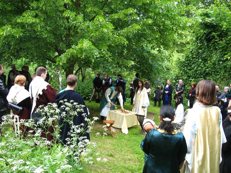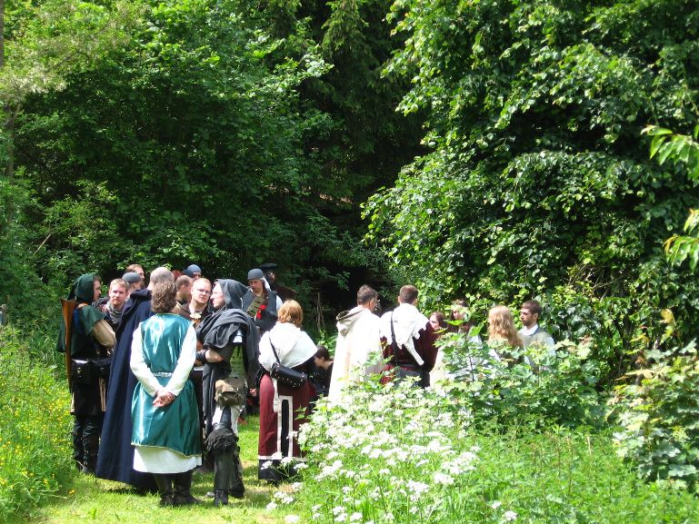 Der Naturbauten-Park wandelte sich heute für das Life-Rollenspiel (LARP) in ein Sonnenheiligtum.