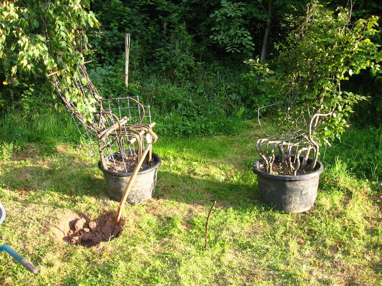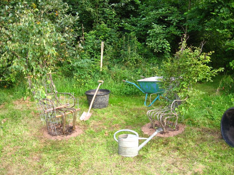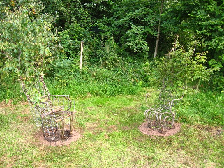Wenige Stunden nach dem das Fernsehteam die Aufzeichnungen beendete pflanzte ich die Stühle ein. Jetzt werden sie schnell viel kräftiger werden, so daß man sich in einigen Jahren auch auf sie setzen kann.