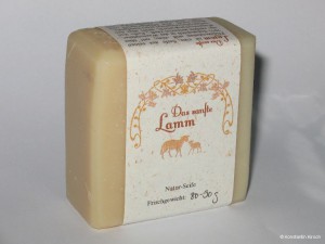 Das Sanfte Lamm ist eine Seife aus reinen Pflanzenfetten und -ölen, mit über 70% Schafmilch in der Wasserphase. Sie enthält keinerlei Duft-, Farb- und Konservierungsstoffe, dafür aber den vollen Glycerinanteil einer handgesiedeten Seife. Die Milchproteine und eine großzügige Überfettung mit Sheabutter und Lanolin machen sie zu einer Kostbarkeit für die natürliche Hautpflege.