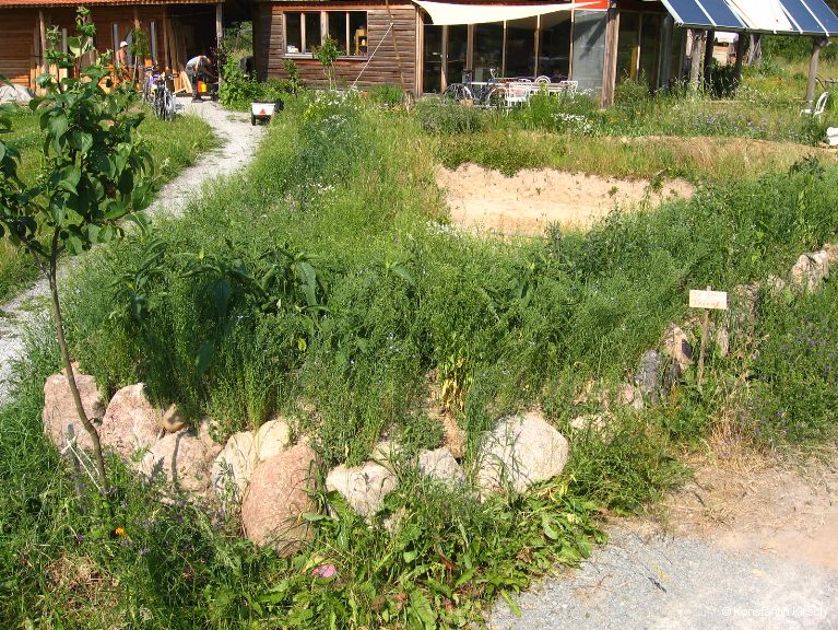 Heute habe ich den Mitte April angelegten Kräutergarten besucht. Der Boden ist sehr trocken. Aber die ausgesäten Ölsaaten Lein und Leindotter sind gekeimt und schützen so die Jungpflanzen. Bis zur vollen Wirkung wird der Garten ca. 2 bis 3 Jahre brauchen. Dann sind die Stauden größer und kräftiger.