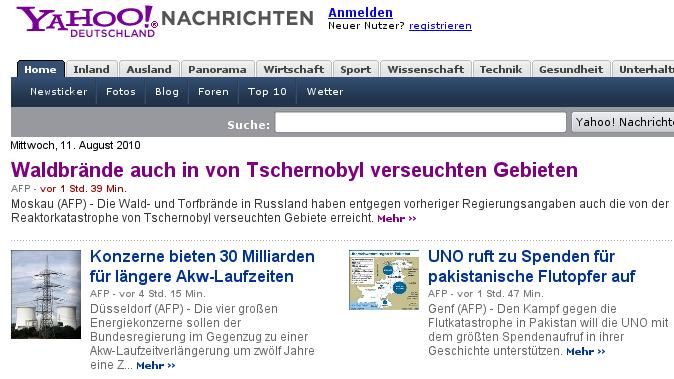 Die yahoo-Nachrichten (http://de.news.yahoo.com) von Heute sind blanker Sarkasmus mit radioaktiver Ladung: