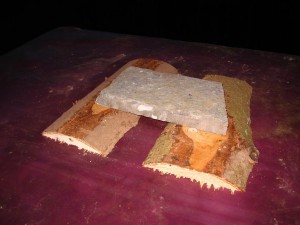 Damit die Folie im Wind nicht flattert habe ich oben drauf noch zwei Brett Stücke gelegt und einen Stein als Gewicht dazu: