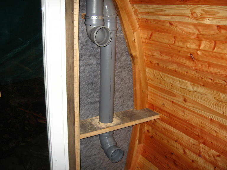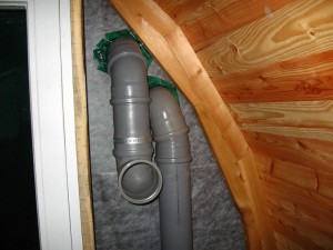 Diese Rohre gehen durch die Wand, und in der Wand nach oben. Wobei das obere Rohr mehr an der Innenseite der Aussenwand geführt ist und das untere Rohr mehr an der Aussenseite der Aussenwand geführt wird. Die Ausgänge ins Freie sind in unterschiedlicher Höhe. Das obere Rohr geht etwas weiter oben ins Freie als das untere Rohr wobei beide Öffnungen höher liegen als das obere Ende des Kühlschrankes.