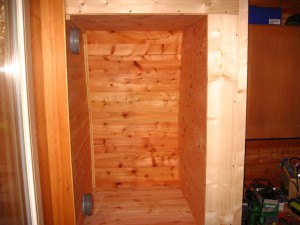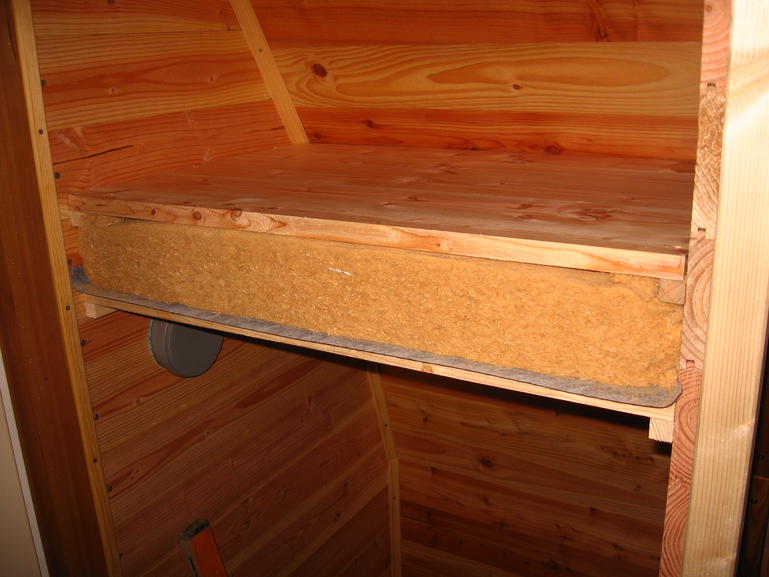 Der Schrank ist komplett mit 10 cm Holz-Weichfaserplatte gedämmt: