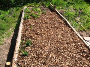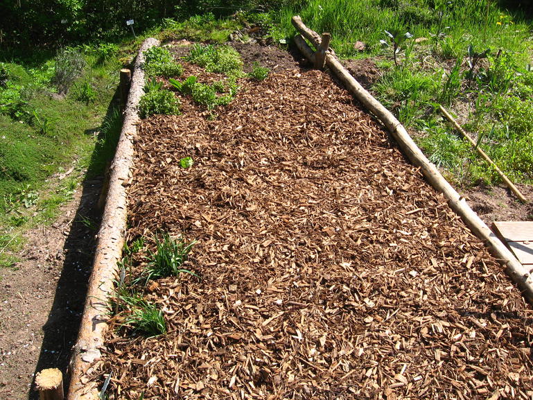 Auf Anregung dieses Filmes habe ich ein Beet mit ca. 15 cm Holzhackschnitzel bedeckt. Mal sehen wie die Gartensaison wird.