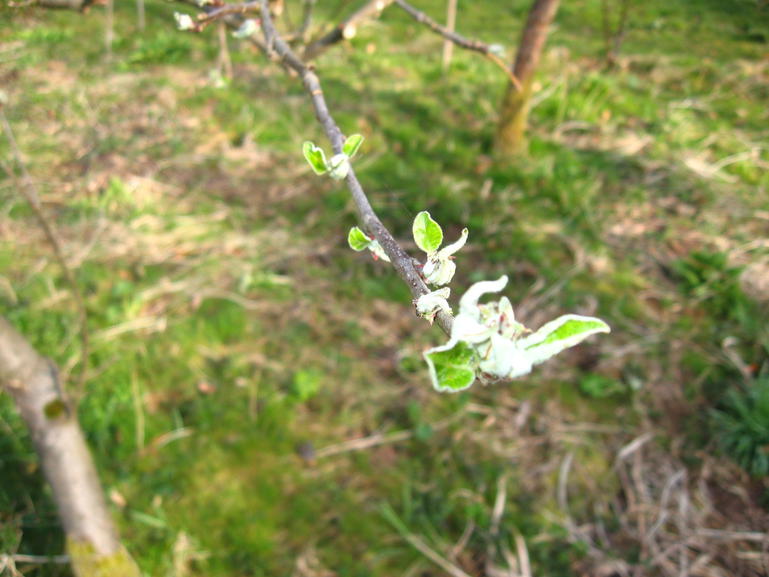 im Vergleich dazu sind die Apfel-Knospen noch fast nicht zu finden: