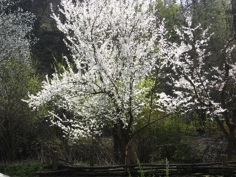Die Kirschpflaume (Prunus cerasifera) blüht und duftet in voller Pracht. Lange vor Kirsche und Apfel ist sie in diesem Jahr für die Honigbienen die perfekte Nahrung nach der Fastenzeit im Winter.