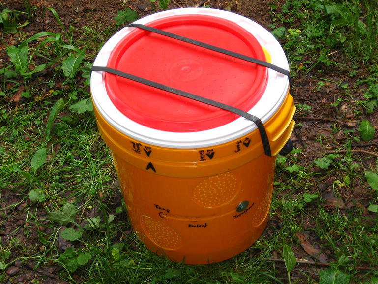 Da der Gummi beide Griffe der Eimer umfasst können sie sich während der Autofahrt nicht mehr verdrehen. Die Bienen bleiben gut und sicher verschlossen.