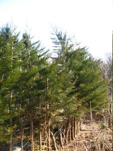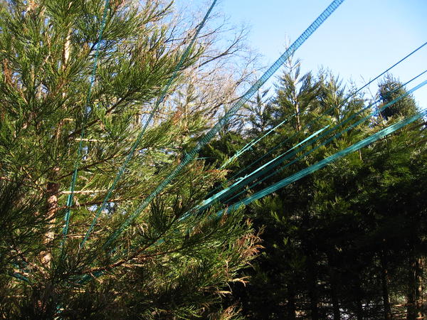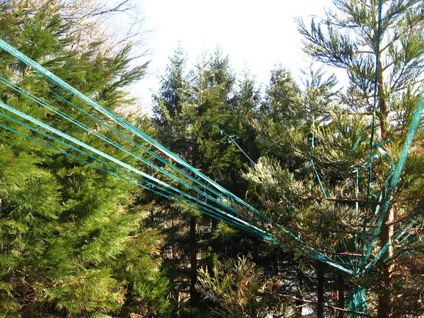 Keine Sorge! Ich lass ja kein Flachdach wachsen. 🙂 Die Bäume streben von sich aus etwas nach aussen, um mehr Licht zu bekommen. Jetzt neigen sie sich max. um 10° nach innen. In einem Jahr sind die Bäume wieder etwas gewachsen. Diesen Bereich will ich etwas stärker krümmen, so im Bereich 20° bis 30°. Ausserdem haben wir nicht so oft Tiefschnee…