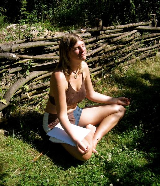 Birgit, Juni 2008, im Waldgartendorf am Triesch, bei einem Rohkostcamp, dass sie organisiert hatte: