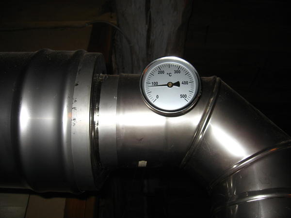 Sobald die Abgastemperatur 110°C erreicht hat wurde die Anheizklappe geschlossen so dass die seitlich liegenden Fallzüge in ihre Funktion kamen. Danach sank die Abgastemperatur auf erstaunlich niedrige 80°C!