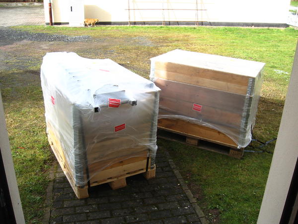 Der 10D wird auf zwei Paletten geliefert: