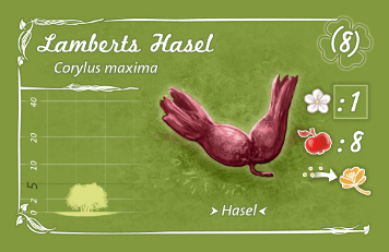 Jeder Spieler erhält die Aufgabe, Gehölze zu erwerben und mit ihnen einen Waldgarten anzulegen.