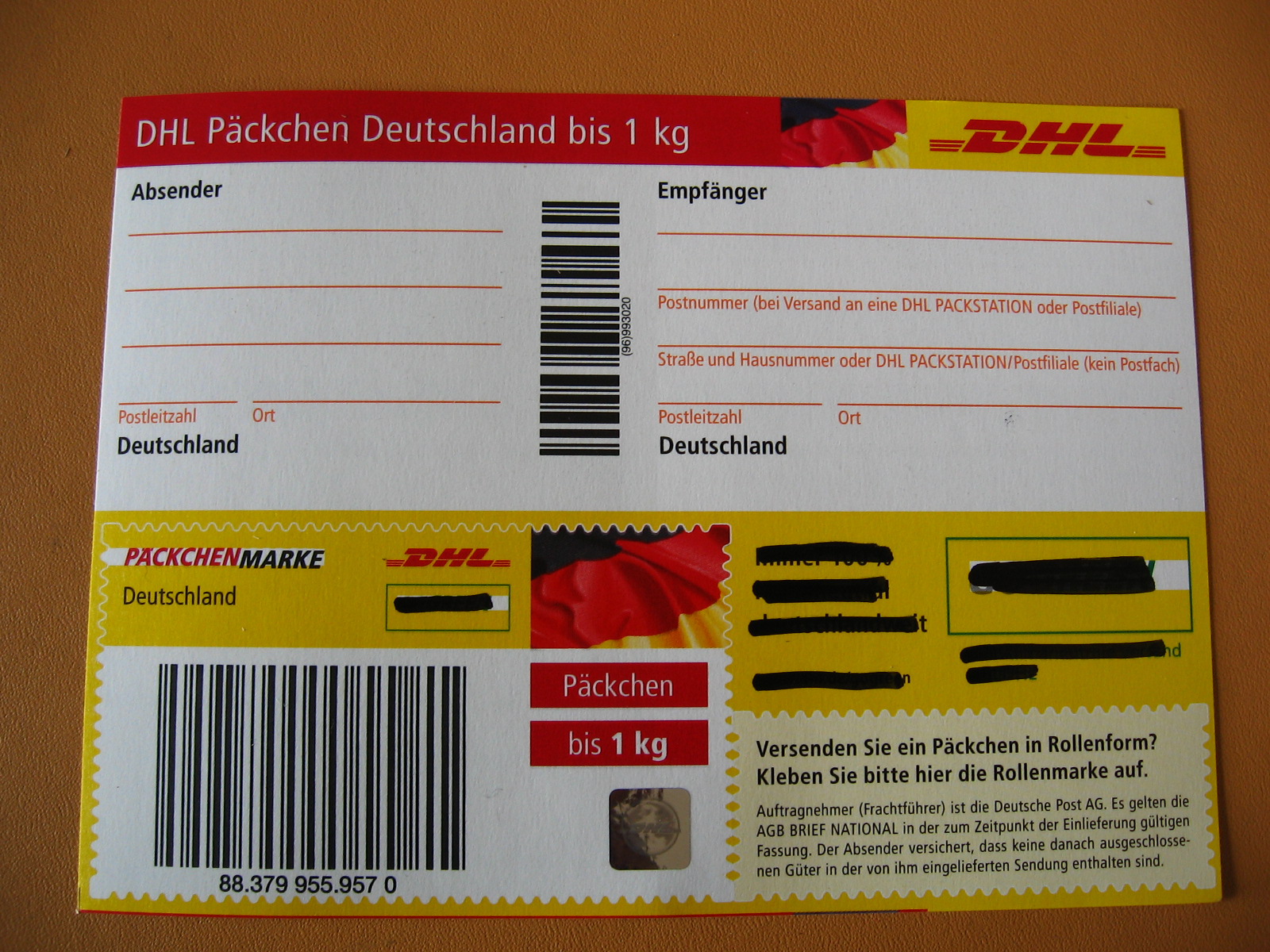 Da wir unsere Päckchen und Pakete auch per Post bzw. DHL versenden (mangels anderen brauchbaren Anbietern), wir aber die CO2-Hetze und Klimalüge nicht auch noch bewerben wollen werden die Päckchen- und Paketaufkleber vor der Nutzung teilweise übermalt.