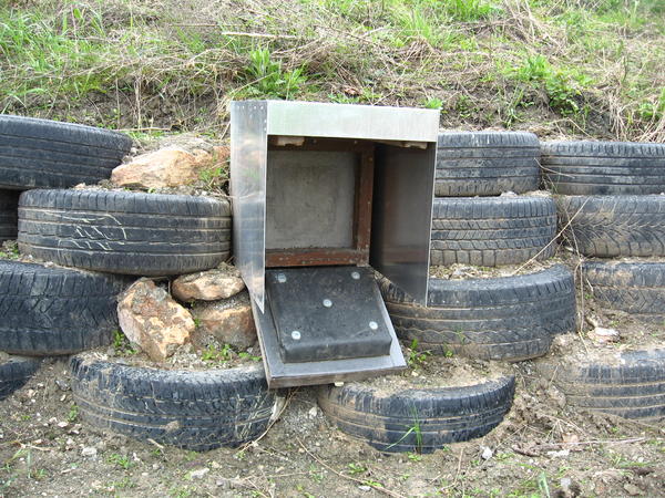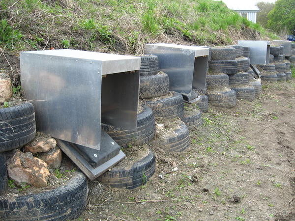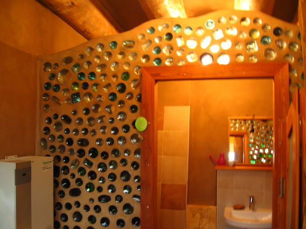 Oben rechts im Bild sieht man die eingebauten Getränkedosen, die beim Verputzen ausgespart blieben. Es wundert etwas, dass keine Altreifen sichtbar gelassen wurden…