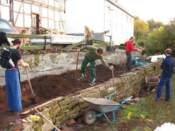 Im Rahmen eines Workcamps haben wir geschaufelt um den zukünftigen Sackwand-Bereich freizulegen:
