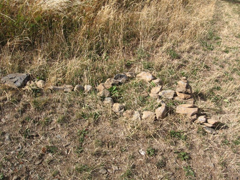 Auf dem 2 km Fußweg vom Parkplatz zum Gelände fand ich diesen Hinweispfeil um den passenden Feldweg zu finden: