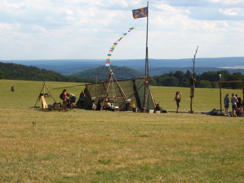 Ab heute findet einen Monat lang auf der hohen Geba eine Versammlung der Regenbogenfamilie statt. Thema ist der Weltfrieden. Passend dazu wurde ein Platz gefunden in der Nähe der alten West-Ost-Grenze.
