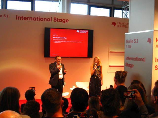 Er will mit seiner Firma trotzdem jährlich auf der Buchmesse in Frankfurt präsent sein, wegen den internationalen Kontakten.