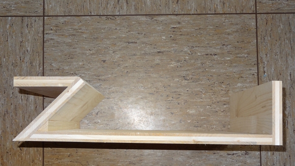 flaches Brett: 12 x 46,2 cm (eine Kante 45° abgeschrägt plus Aussparung auf der Schräge mit 7 mm x 15 cm)
