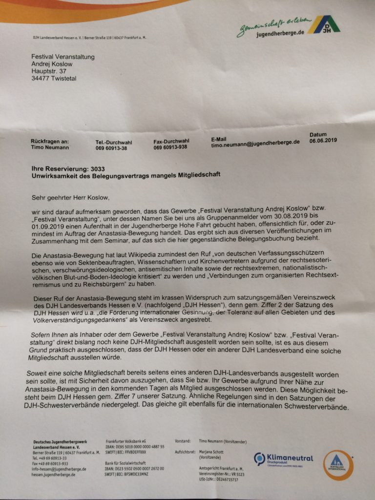 Ein Blog-Post über eine gekündigte Veranstaltung in Bezug zur Verleumdung und Hetzkampagne gegen die sogenannte Anastasia-Bewegung.