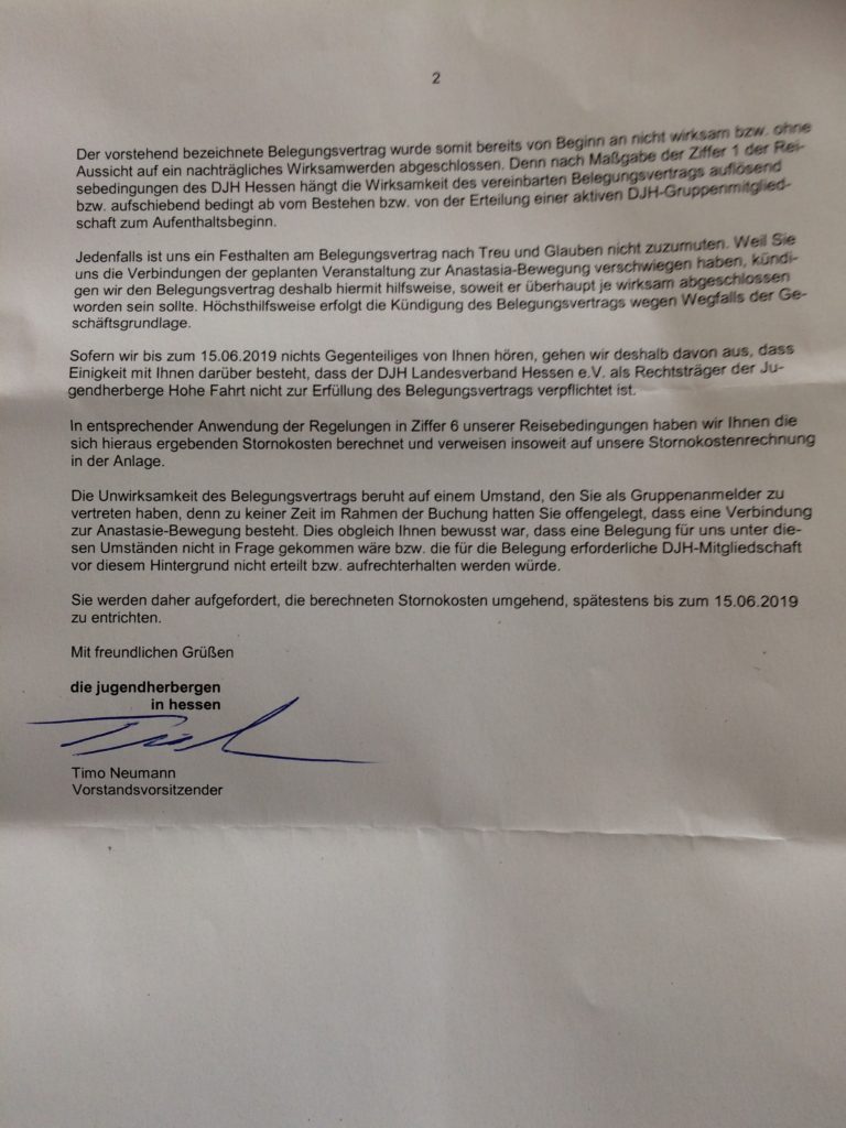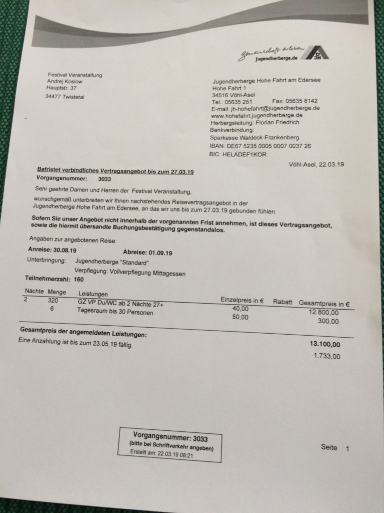 Es sollte vom Festivalveranstalter doch eigentlich die Möglichkeit bestehen, Schadensersatz von der Jugendherberge (oder eben dem entsprechenden Vertragspartner) einzuklagen. Schließlich sind Aufwendungen entstanden und Gewinne verloren gegangen. Einfach mal in die Gegenoffensive gehen. 🙂