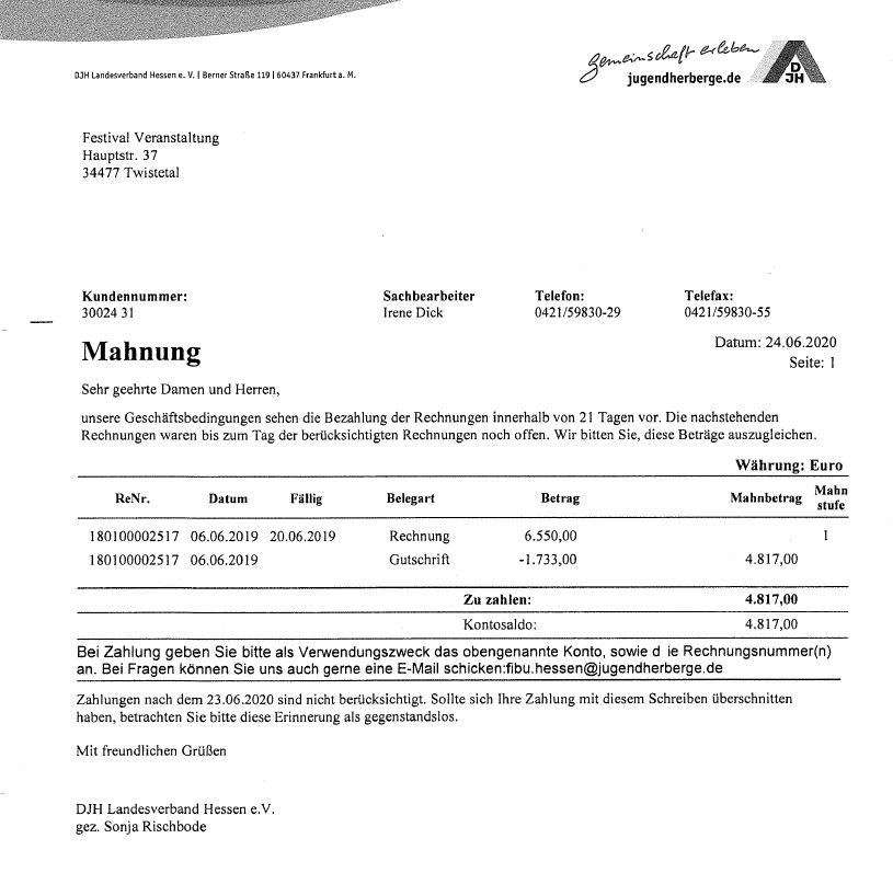 Aha, die Corona-Lücken fördern wohl das Mahnwesen notleidender Jugendherbergen? War etwas naiv, dort irgendwas durchführen zu wollen außer touristische Einzelfamilienaufenthalte. Was die Jugendherbergen früher waren, davon zeugen viele Postkarten auf Antik- und Nachlaßtrödel-Verkaufsseiten. Heute sollte niemand mehr einer rotbunten DPWV-Organisation auch nur einen Cent schenken, ist meine Meinung.