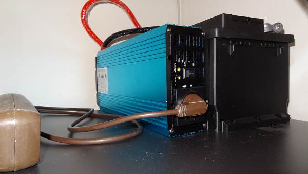 - Ein Sinus-Wechselrichter 300 Watt mit Ladefunktion (bei Amazon für 40 Euro)
