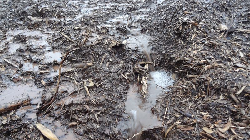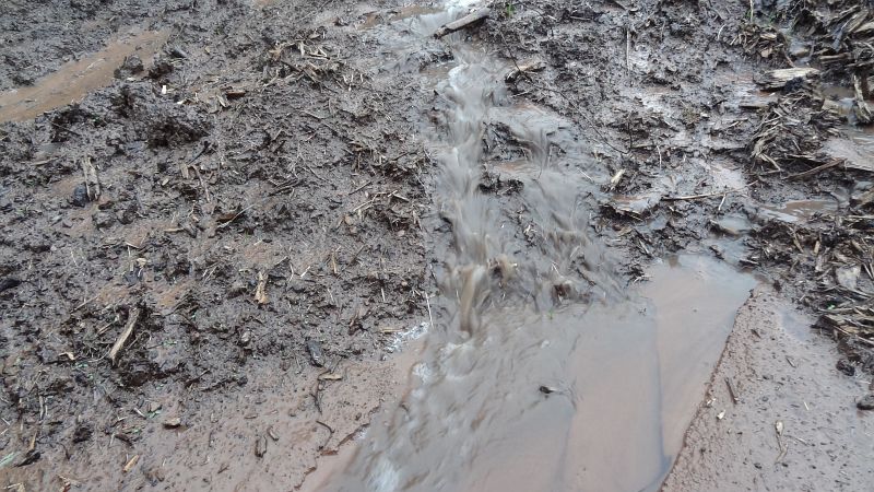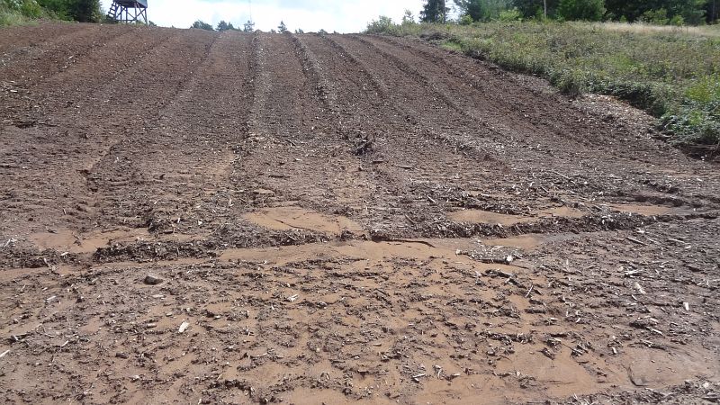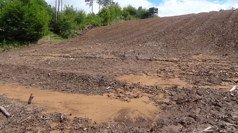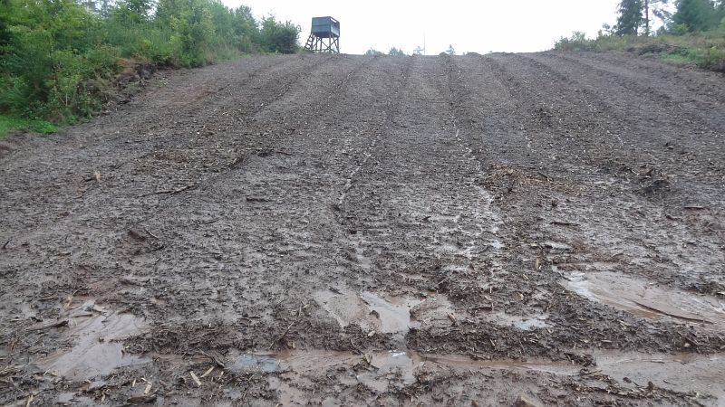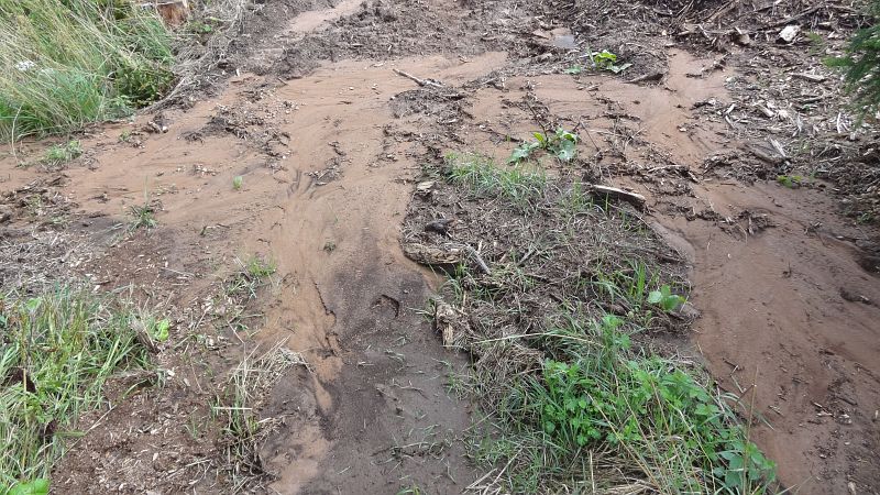 In der vergangenen Woche hat es in unserer Region ca. 100mm geregnet. Für einen älteren Wald ist das locker zu schlucken. Auch eine gut gepflegte Wiese kann 100mm locker aufnehmen. Offener Boden kann das jedoch nicht. Erst recht nicht bei Neigung.
