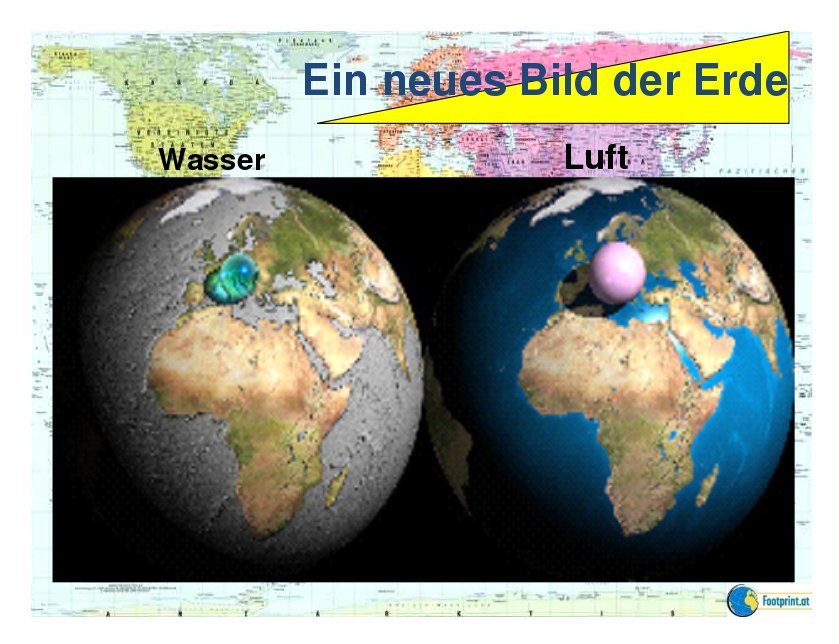 Um das verständlich zu machen, gibt es ein anderes Bild in dem alles Wasser (sowie Luft) der Erde als eine Kugel dargestellt ist:
