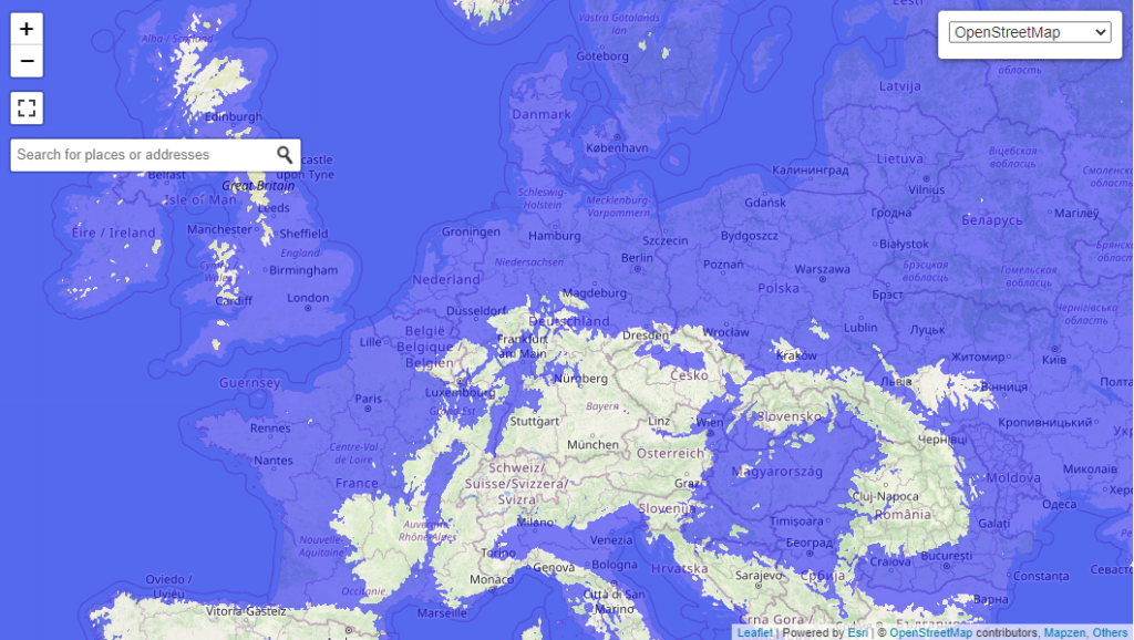 Es gibt eine besondere Webseite auf dessen Karte man Flut und Ebbe einstellen kann in beliebiger Höhe bzw. Tiefe!