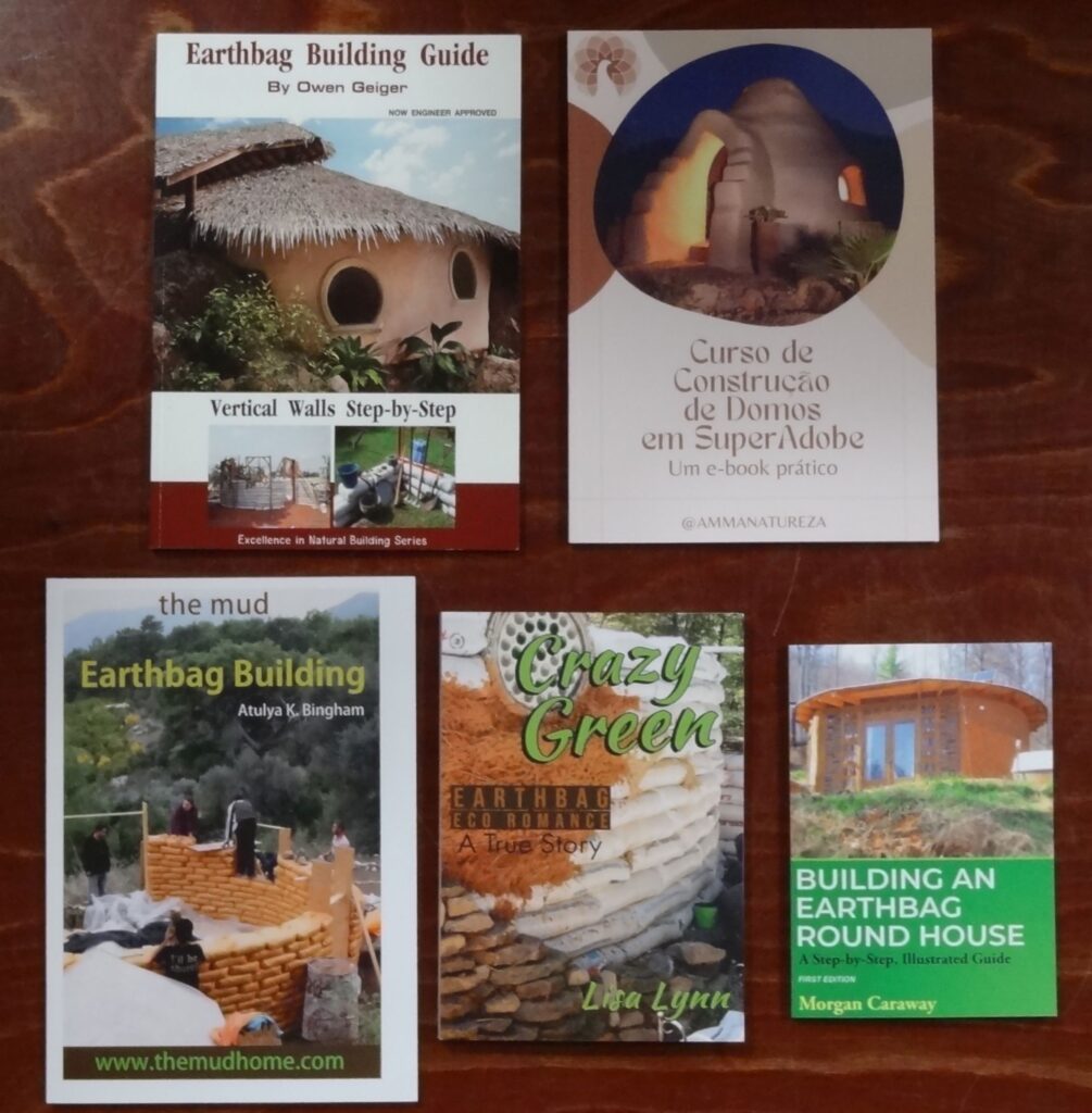 Hier ein Foto der mir vorliegenden Papier-Fachbücher zu Earthbags: