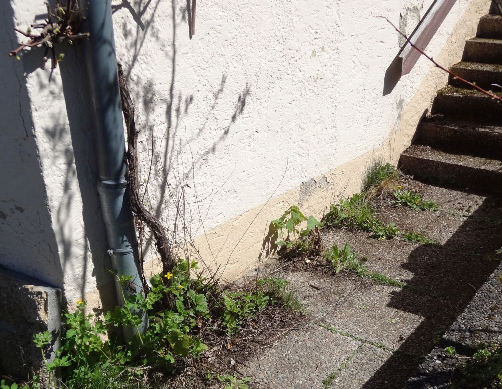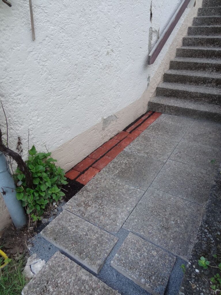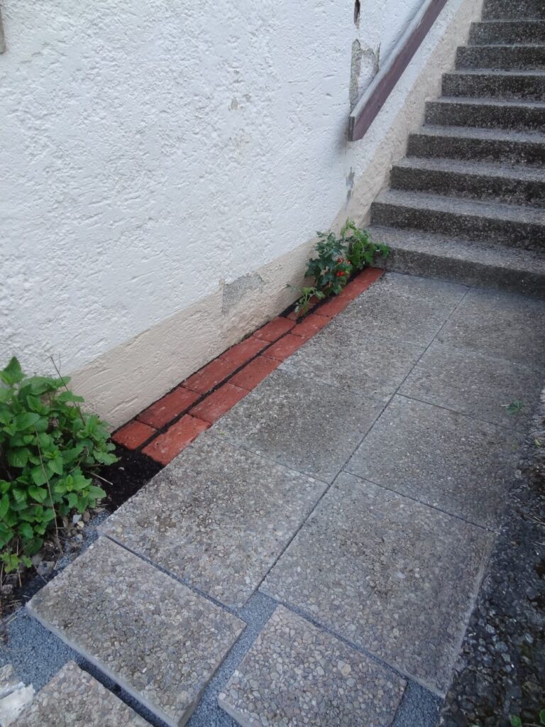 Auf der Südwand unseres Hauses ist ein Weg aus Waschbetonplatten. Die Fugen waren schwer verkrautet, die Platten lagen teils schon geneigt.