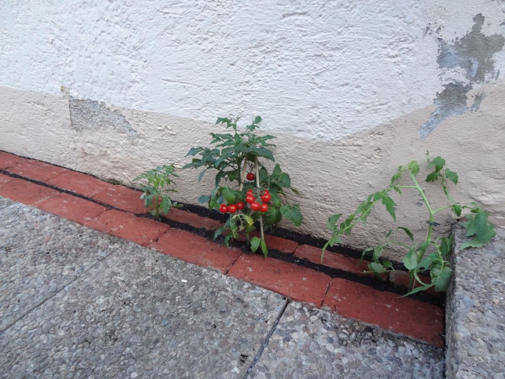Anstatt sich zu ärgern, daß unerwünschte Pflanzen in den Fugen so gut wachsen, kann man durchaus gewünschte Pflanzen in Fugen anbauen und sich freuen über deren gutes Wachstum.