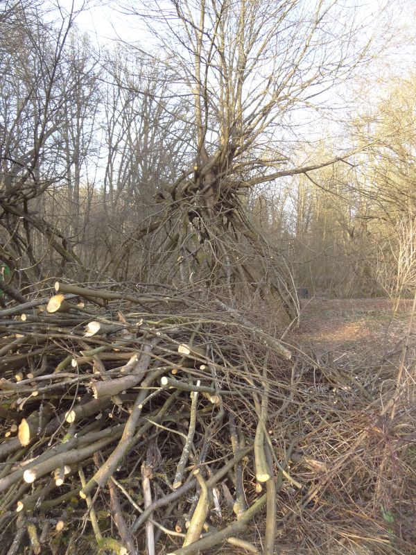 Nach dem Schnitt lag ein ganzer Berg an Ästen auf dem Boden: